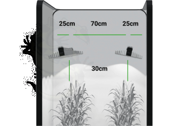 Die EVO 4-120 ist unsere wärmste Empfehlung für alle Flächen mit einer maximalen Tiefe von 120cm. Die erzielte Beleuchtungsintensität liegt im Maximum dessen, was wir gerade noch ohne separate CO₂ Einspeisung empfehlen können. Mit 265W und 725µmol/s je Einzelleuchte können mit zwei Leuchten auf einer Fläche von 1,2×1,2m beeindruckende Beleuchtungsintensitäten erzielt werden. Durch die Sekundäroptik, der Möglichkeit den Neigungswinkel einzustellen und durch die richtige Positionierung erreichen Sie hohe Beleuchtungswerte selbst in den hintersten Ecken, ohne an Homogenität einzubüßen. Anders als bei anderen Leuchten haben Sie keinen zentralen Hotspot und verteilen das Licht gleichmäßiger über Ihren Pflanzen. Die Möglichkeit der optionalen Dimmung erlaubt es Ihnen, individuell auf die Bedürfnisse Ihrer Pflanzen zu reagieren.